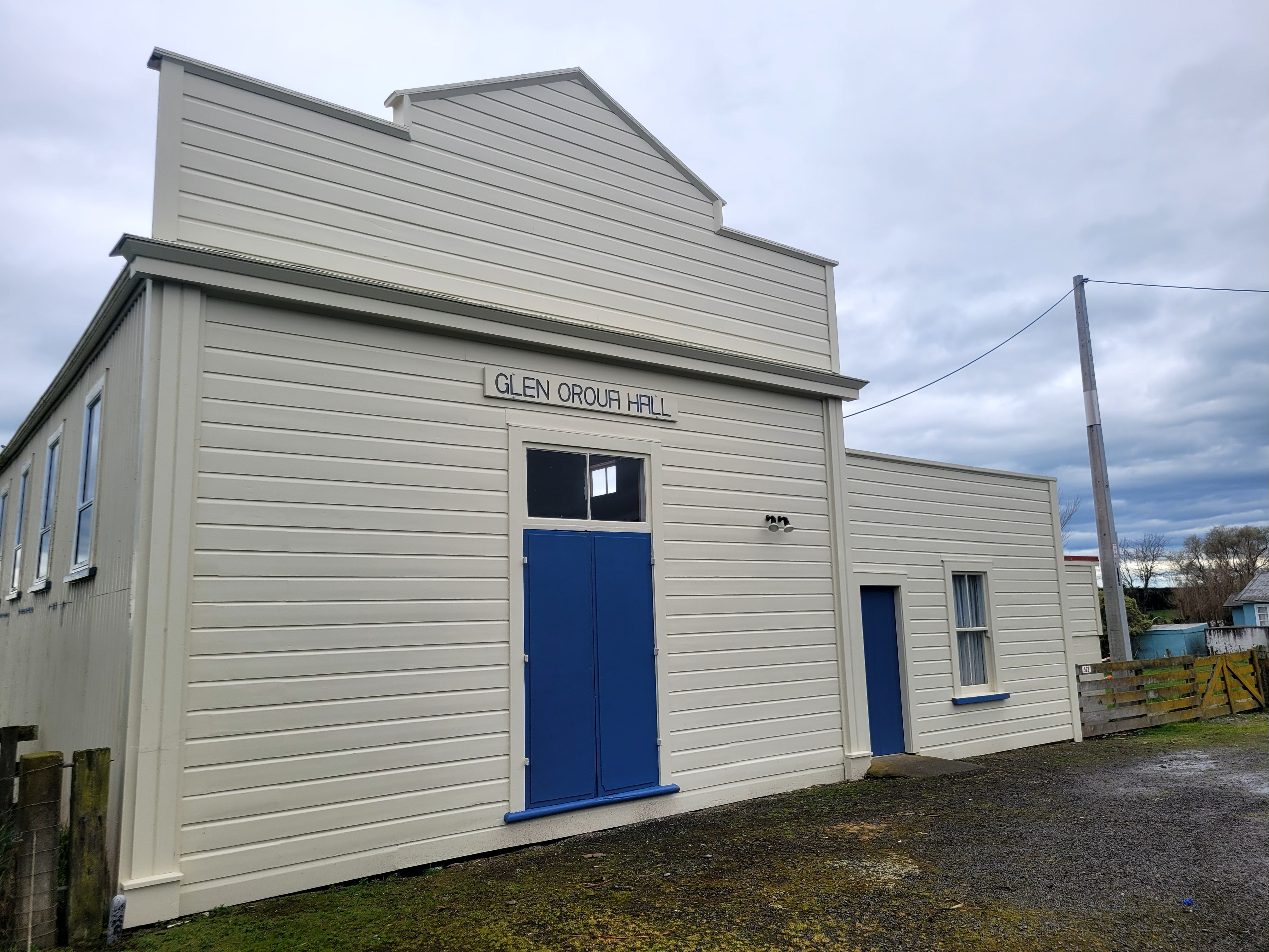 Glen Oroua Hall's freshly painted exterior.