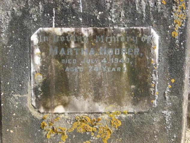 | Inscription: | In loving memory of Martha Hooper Died July 4 1940 Aged 74 years. |